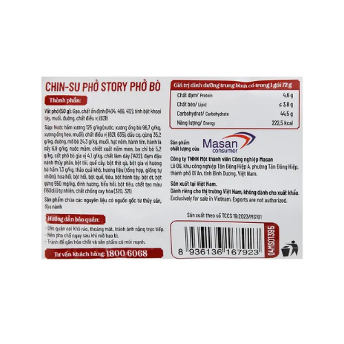 Vắt phở (50g): Gạo, chất ổn định, tinh bột khoai tây, muối, đường, chất điều vị.