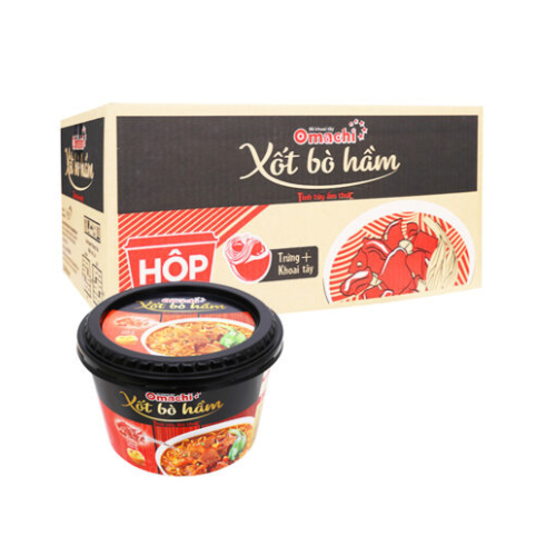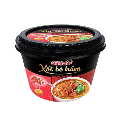 Sợi mì khoai tây, tinh bột, dầu cọ, nước cốt xương thịt,...là những nguyên liệu quen thuộc tạo nên hương vị cho mì Omachi xốt bò hầm. Sản phẩm cung cấp cho cơ thể những loại dưỡng chất thiết yếu như carbohydrate, chất đạm, chất béo.