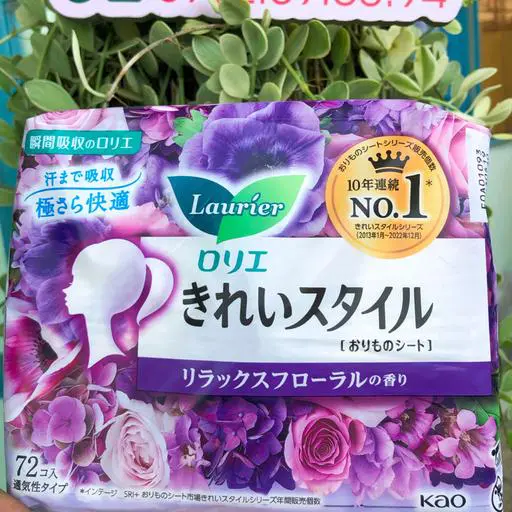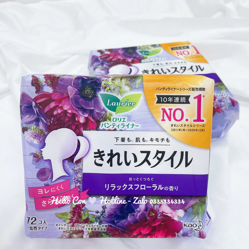 ✨ Băng Vệ Sinh Kao Laurie Hàng Ngày 72 Miếng (5 Mùi Hương, Tím - Hương Hoa) ✨