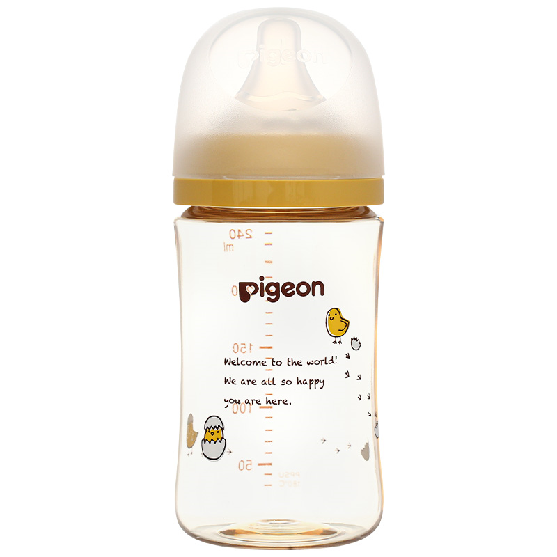 "Mình rất hài lòng với bình sữa Pigeon cổ rộng 240ml hình con gà. Bé nhà mình rất thích bú bình này vì núm ty mềm mại, thiết kế lại rất đáng yêu. Từ ngày dùng bình này, bé bú ngoan hơn hẳn và không còn bị đầy hơi nữa." - Mẹ Lan Anh chia sẻ.