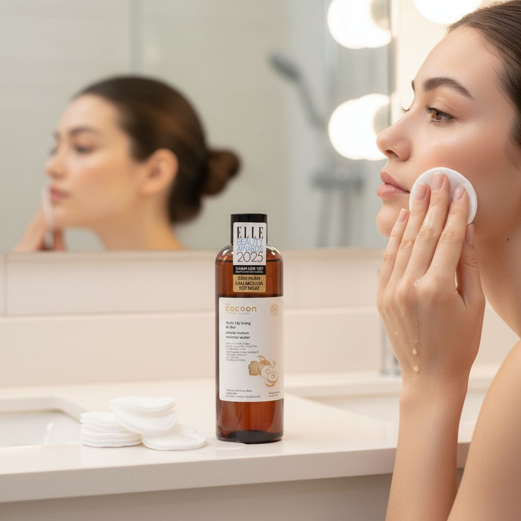 Da dầu mụn, dễ bí tắc nhưng sợ tẩy trang khô rát? Nước tẩy trang bí đao Cocoon 500ml giúp làm sạch lớp trang điểm, kem chống nắng và bụi bẩn một cách dịu nhẹ, đồng thời hỗ trợ làm dịu – giảm bít tắc lỗ chân lông nhờ chiết xuất bí đao kết hợp các thành phần làm sạch lành tính.