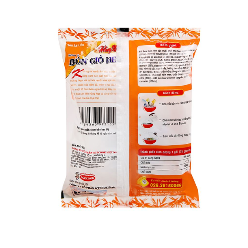 Tên sản phẩm: Bún Giò Heo Hằng Nga 75g (Thùng 30 gói)