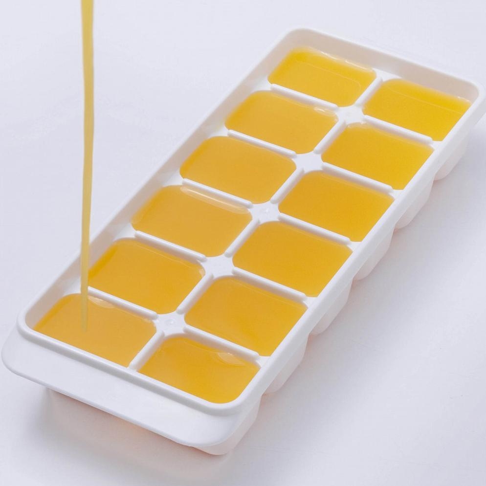 Cho thức ăn dặm hay nước trái cây vào từng ngăn. Khi thức ăn nguội lại ở nhiệt độ bình thường, đậy nắp lại rồi bỏ vào ngăn đông. Khi muốn sử dụng, chỉ lấy phần thức ăn cần thiết, phần còn lại đậy nắp khay và tiếp tục làm đông lạnh hoặc để vào dụng cụ khác để vào ngăn đông.