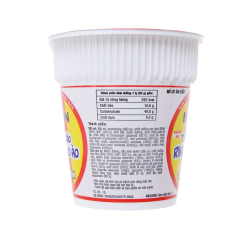 Vắt mì: Bột mì, shortening (dầu cọ, chất chống oxy hoá), tinh bột, muối, đường, dịch chiết cá, chất điều vị, chất ổn định, chất nhũ hoá, bột nghệ, phẩm màu.