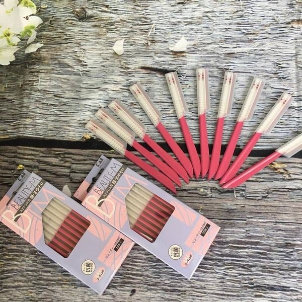 Kai Set 10 dao cạo lông mặt màu hồng là dao cạo lông mày, cạo mặt có lớp bảo vệ chính hãng KAI nội địa Nhật Bản.