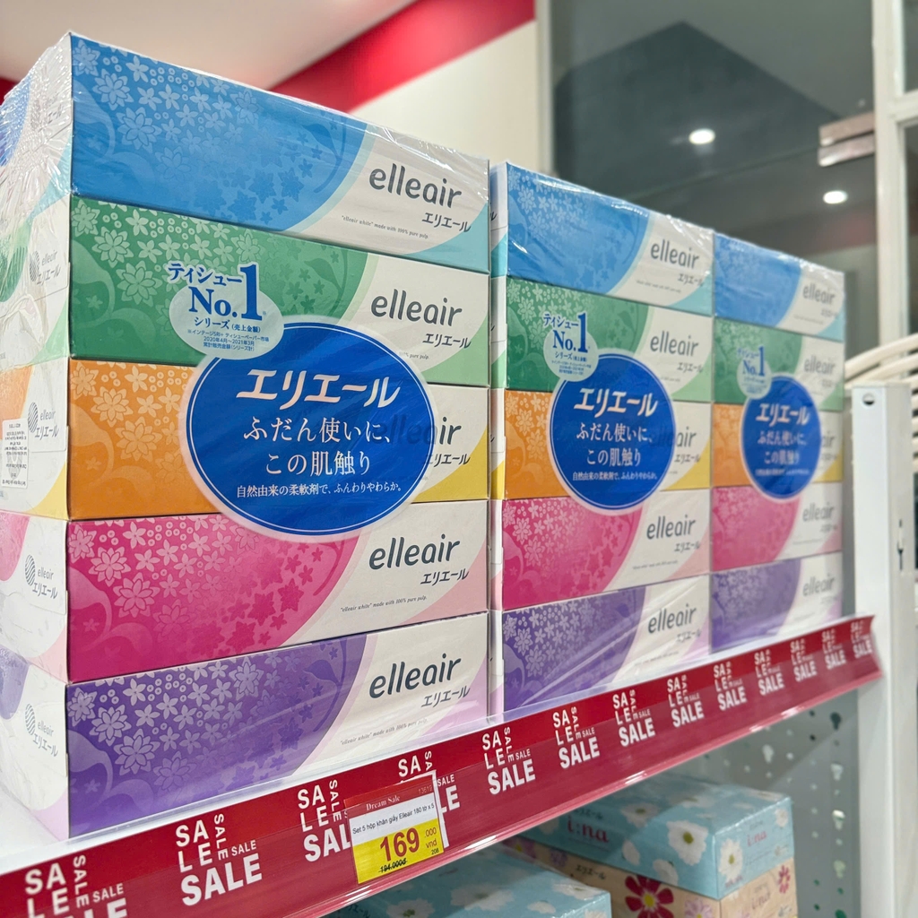 🧻 Set 5 hộp khăn giấy Elleair 180 tờ – Mềm mịn, dai vượt trội, thân thiện làn da chuẩn Nhật Bản! 🇯🇵✨