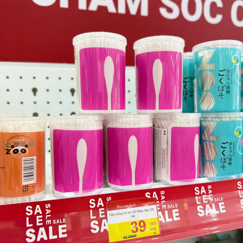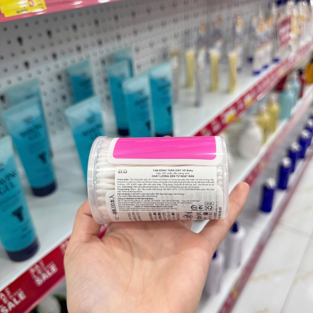 👶 Tăm bông trẻ em UD Baby Cotton Swab – Hộp 200 cây – Siêu nhỏ, siêu mềm, “bảo bối” của mọi mẹ bỉm Nhật từ bé sơ sinh! 🍼🇯🇵✨