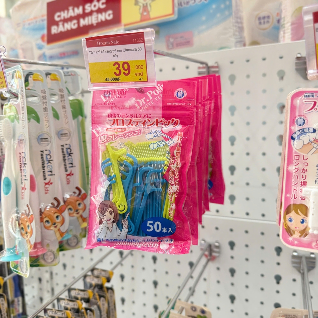 Tên sản phẩm: Tăm chỉ kẽ răng trẻ em Okamura Kids 50 cây