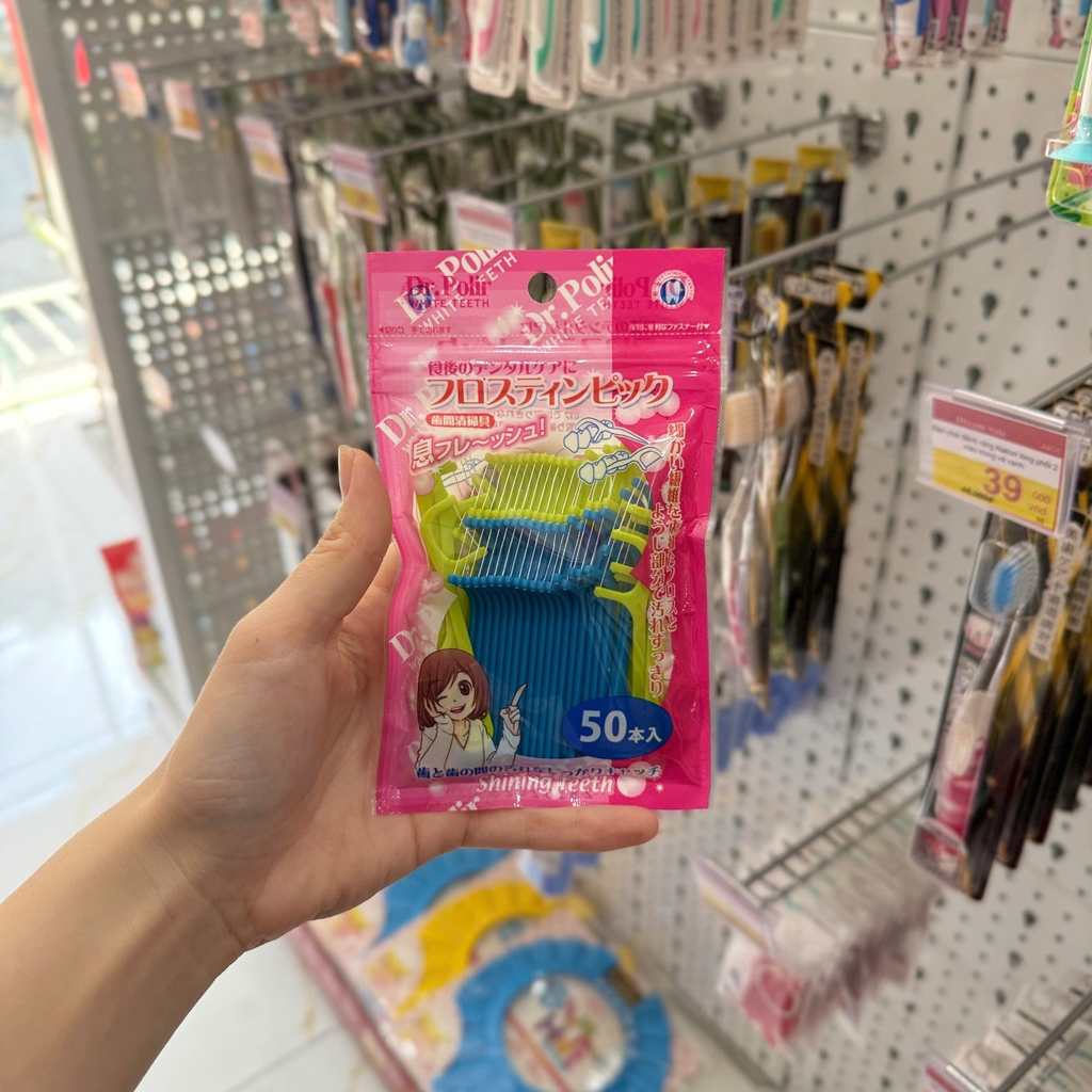 Sợi chỉ siêu mịn + mềm, phủ sáp tự nhiên, luồn êm như lụa, không làm đau nướu đang mọc răng. Tay cầm nhỏ xinh, dài vừa tay bé, có hình thú + màu sắc kawaii (hồng dâu, xanh mint, vàng chanh…) – bé nhìn là mê, tự giác đòi “xỉa răng” như chơi đồ chơi!