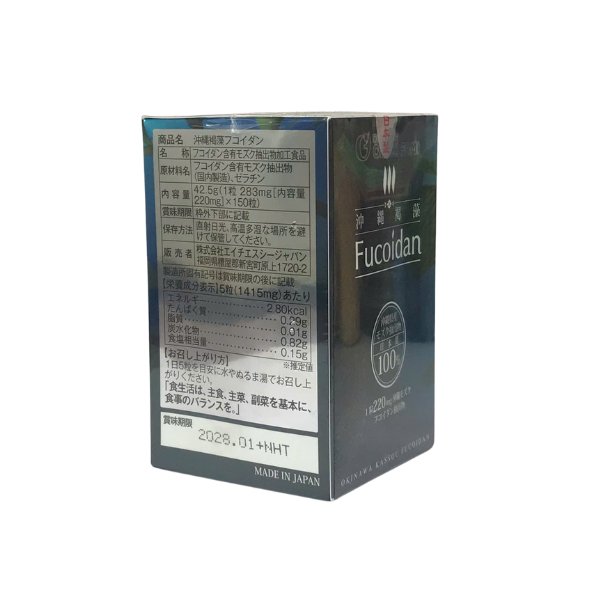 Thành phần chính: Chiết xuất tảo nâu Okinawa Mozuku (Fucoidan), Vitamin C, Kẽm, khoáng chất tự nhiên.
